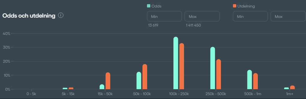 Som alltid knappar vi in vårt system i världens bästa reduceringsverktyg, www.reducering.se, för att få en överblick kring byggets struktur. Det ser bra ut då vi har måånga rader med oss som kan slåss om sexsiffrig utdelning.Se de röda staplarna nedan!