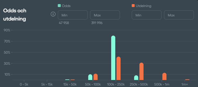 Med hjälp av vyn hos reducering.se kan vi se hur vi komprimerat vårt bygge rejält. de flesta raderna har totalodds mellan 100 000 – 250 000 kr och vi har chans till utdelningar på både sexsiffriga och sjusiffriga belopp.