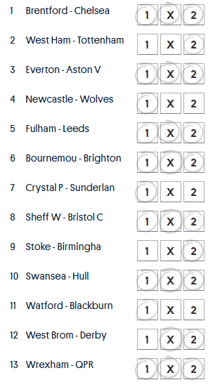 Nästa spik är spänstigare. Birmingham borta mot Stoke. Nykomlingen Birmingham med de stora ekonomiska musklerna förväntas att slåss i toppen. Stoke är redan i toppen men där är väl risken stor att det blir rutschkana nedåt i tabellen efterhand. Oddsmarknaden ger bortalaget favoritskapet och vi håller med. Svenska folket är sega på bollen och nuvarande 35 % hugger vi gärma.
