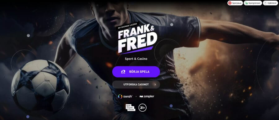 Frank & Fred har sedan starten 2018 vuxit sig till en etablerad aktör bland onlinecasinon i Sverige och har nu tagit steget över till att erbjuda odds på spel och evenemang. Med en svensk spellicens från Spelinspektionen erbjuder Frank och Fred tryggt och ansvarsfullt spelande - med möjlighet att stänga av sig helt från spelande.