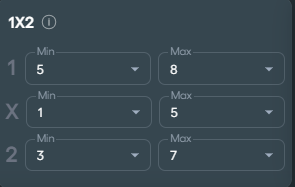 - Bestäm villkor för hur många av dessa matcher som ska sluta på ett visst sätt (1, X eller 2). Säg att du har markerat fyra matcher - sätt ett intervall från minst antal och max antal segrar som dessa lagen får ha tillsammans.