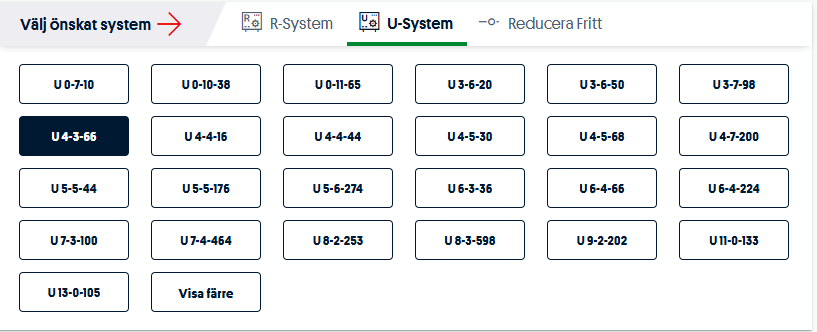 Exempel: Vi väljer U 4-3-6-6 som står för följande: